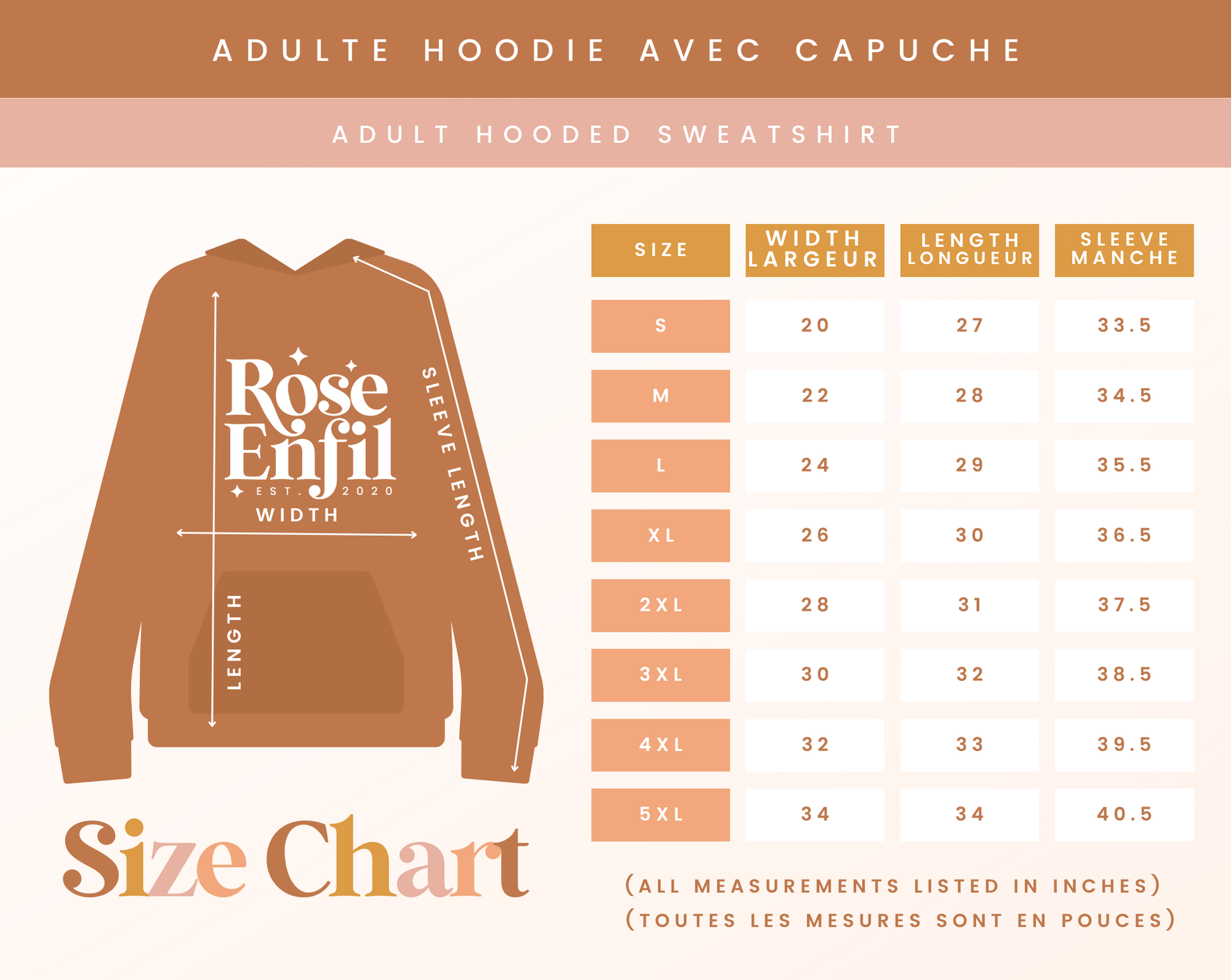 Embroidery : Maximum embroidery hoop size is 5x7', no design can be larger than this. The embroidery size does not vary depending on the garment size. For a larger pattern, choose a printed garment instead.