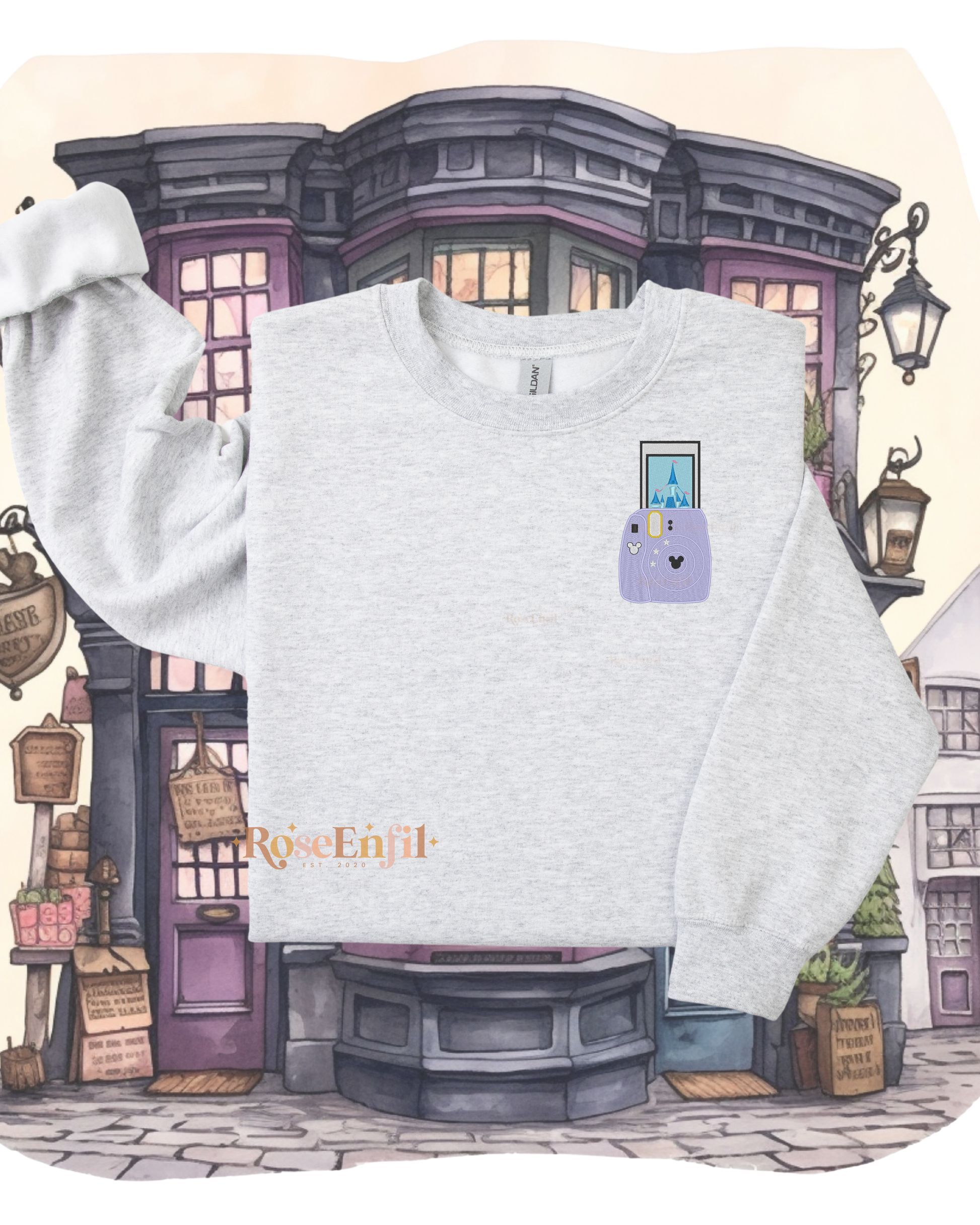 Photo instantanée du Château enchanté - Parc attraction et rêve -Collection enchantement et princesse - Broderie (plusieurs couleurs)
